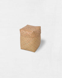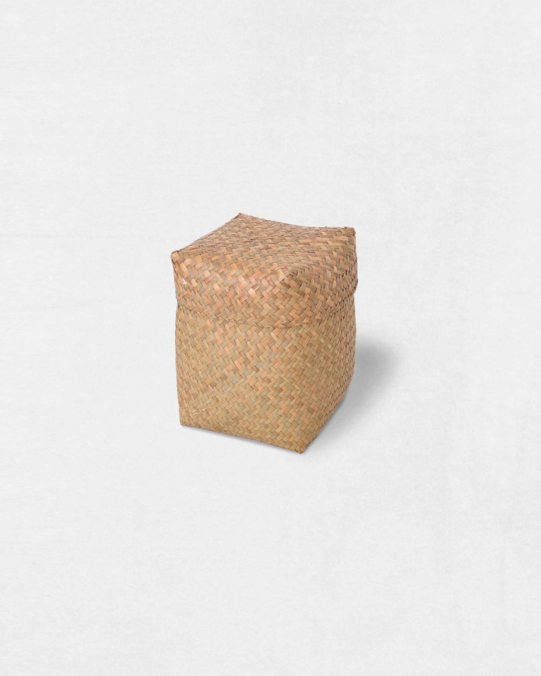 Deep, lidded basket woven from a sedge known as krajood. Can be used as a wastepaper bin, for food storage, or many other uses.