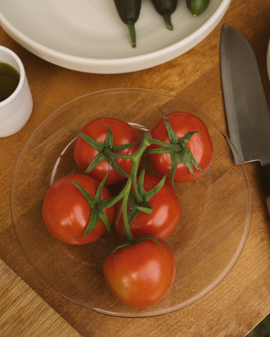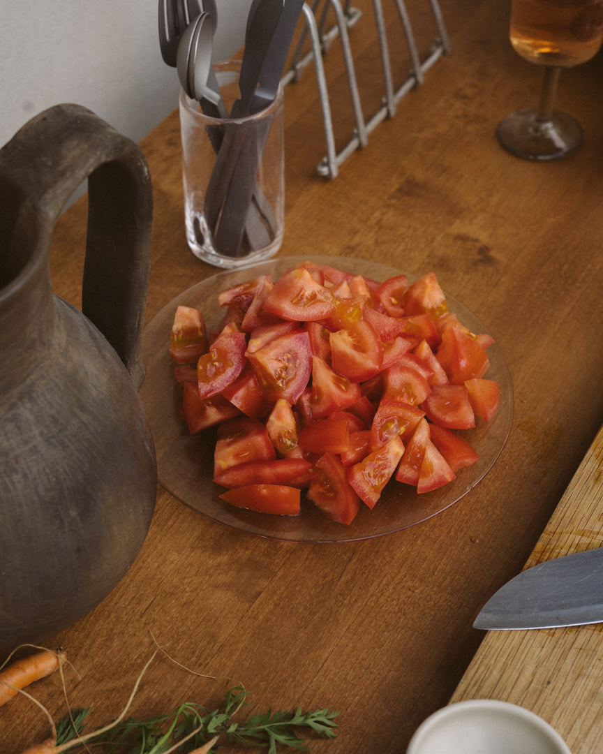 A new approach to unfussy plate ware in a faintly smoky, bubbled hue that hints at its local production process—the series is designed with the quiet maker community of the island of Bornholm in mind, where each piece is made with recycled glass. Designed with a subtle lip to pair with the Isle Glass Shallow Bowl.