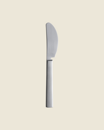 The dinner knife features a wide, hollow handle that provides a comfortable grip while keeping the knife lightweight. Its broad blade, with a curved edge, ensures optimal cutting performance. The knife is forged with a thin, very sharp blade, making it suitable to use as a steak knife. Additionally, the wide blade excels at spreading.