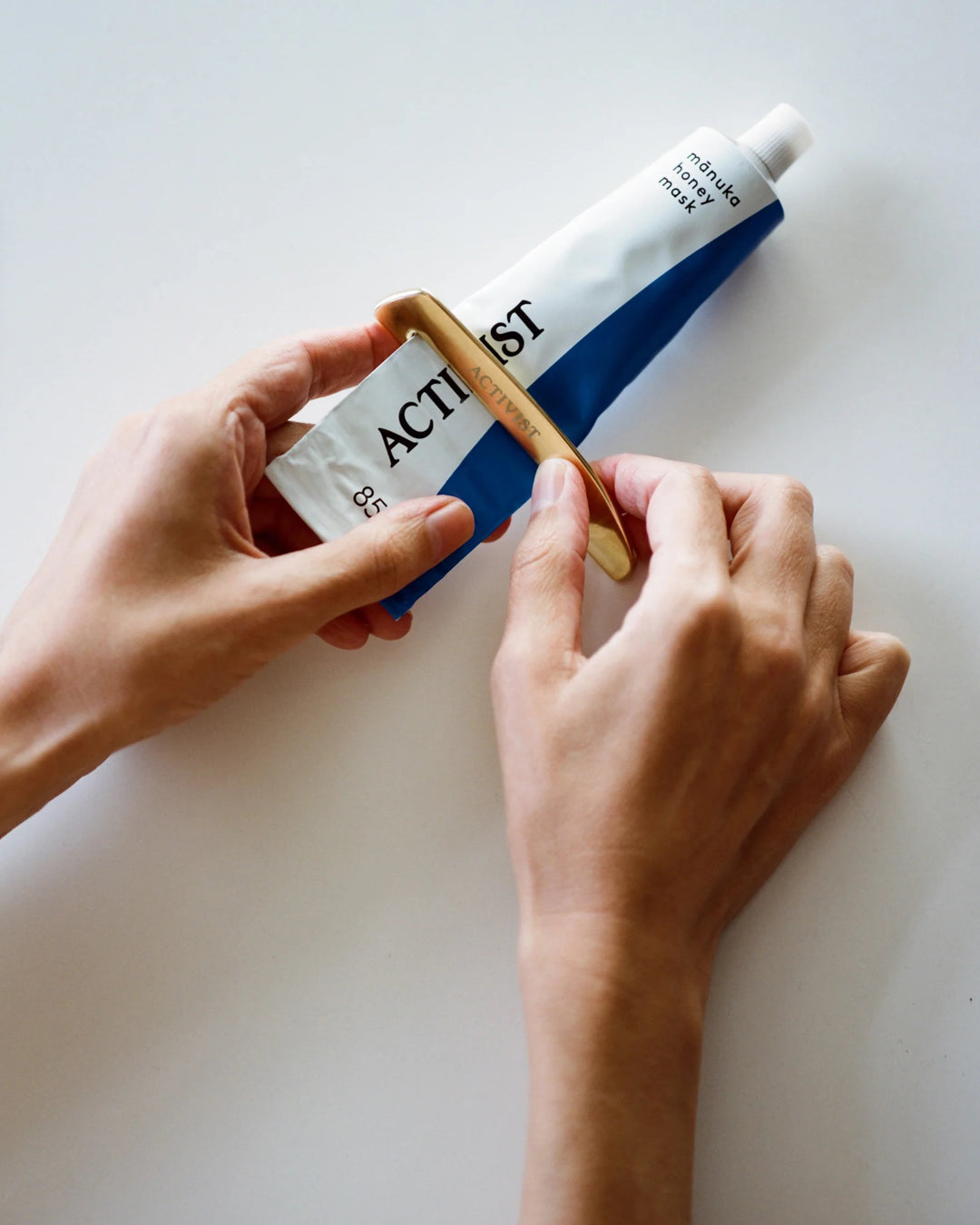 Designed in New Zealand for ACTIVIST by artist Gidon Bing, to complement the ACTIVIST Mānuka Honey Mask experience. ACTIVIST's Brass Tube Press will help you enjoy every last drop of your Mānuka Honey Mask and ensure it lasts longer.