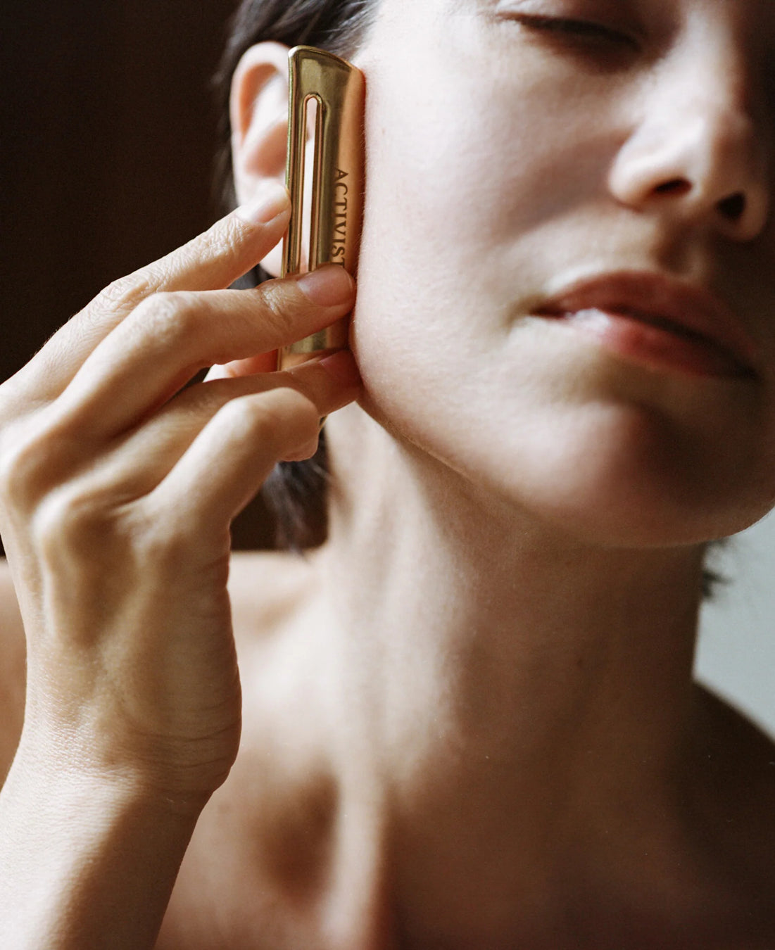 A beautiful object which delivers to the end, and adds an extra luxury to your everyday skincare ritual. This Brass Tube Press can also be used as a contemporary face sculpting/Gua Sha accessory to stimulate blood flow on the face and help smooth skin for a healthy glow. Use with a few drops of serum or oil to help glide effectively over the skin.
