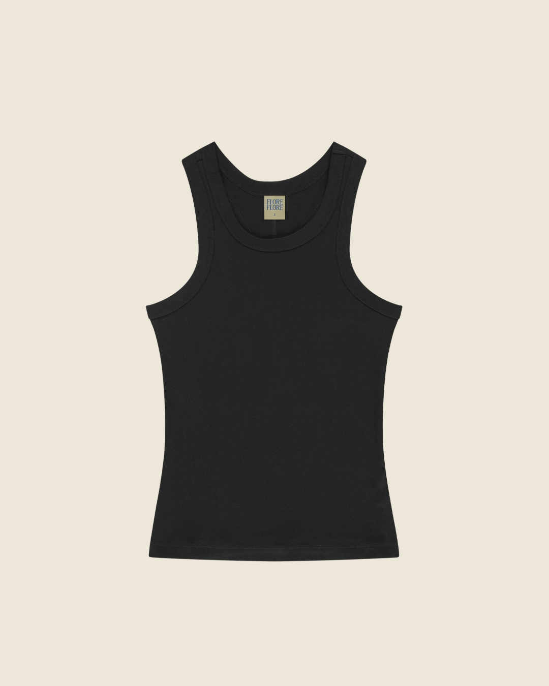 A classic racerback tank with a double-stitched cut-off seam on the back. Designed to be able to wear a bra strapless underneath.