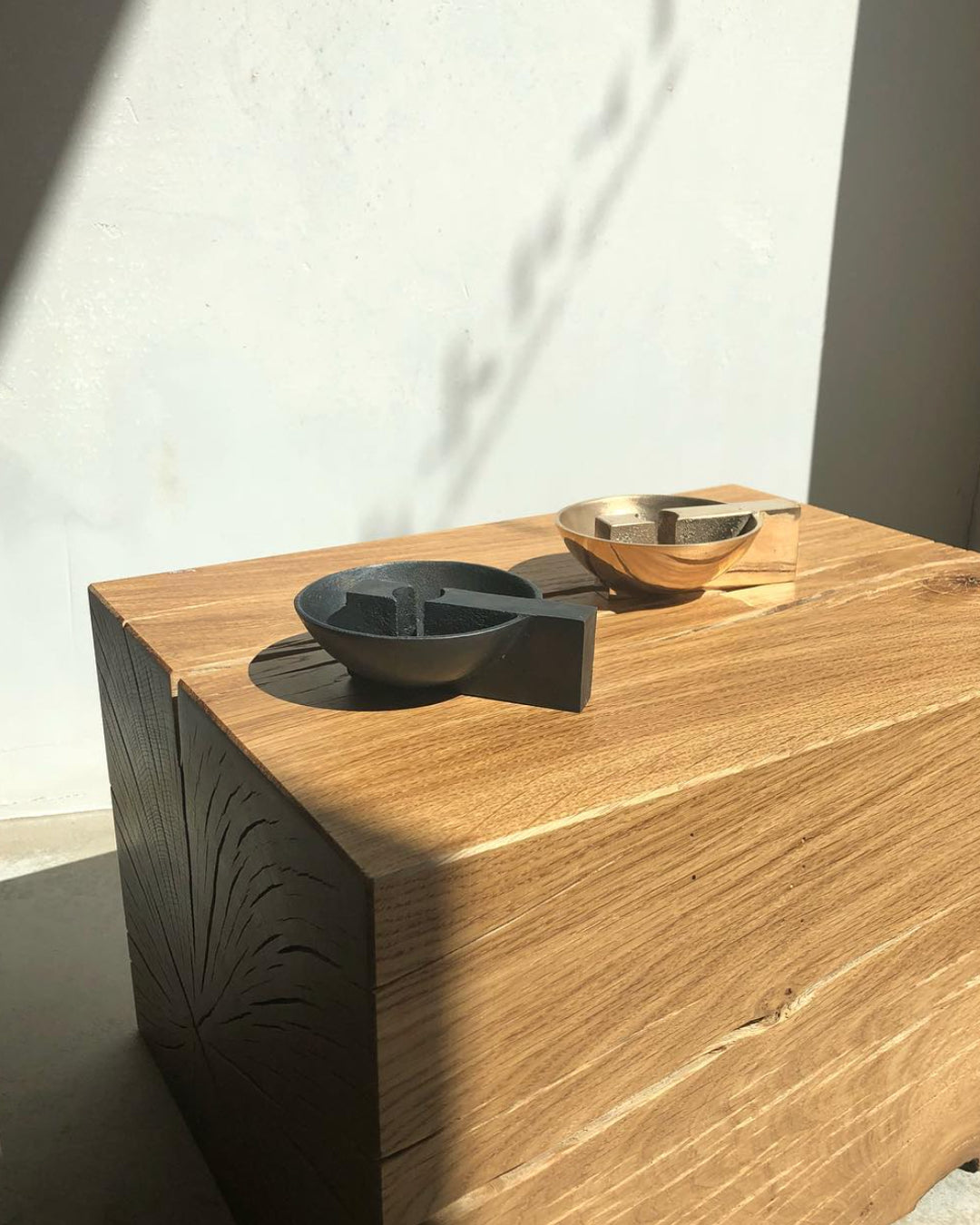 Akolytt candle holder in polished or patinated bronze by Norwegian interior architect and designer, Fredrik Bull.