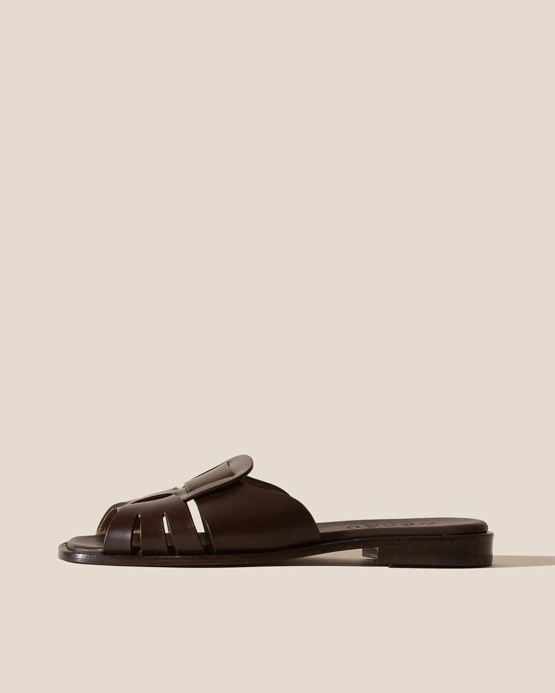 Open-toe fisherman slide with cut out front detail, crafted in calf leather.