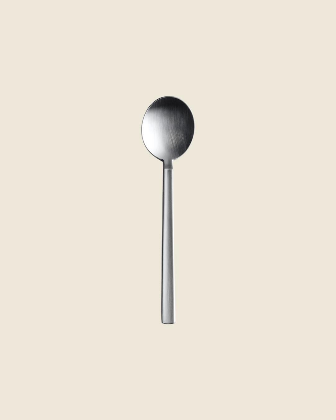 The cake spoon has a flat base, making it suitable for both soft and slightly firmer desserts. The edge of the spoon is shaped to divide or slice without mashing.