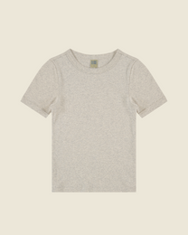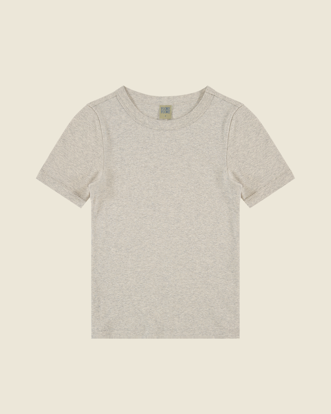 Fitted t-shirt with a lengthened short sleeve for an elegant look. This classic silhouette comes with round bindings and a double stitched cut-off seam on the back.