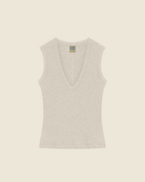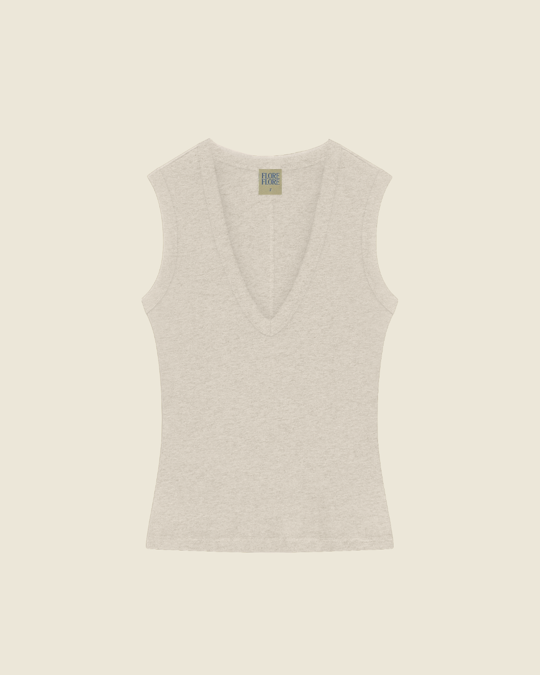 A deep V-neck tank with a scooped-out armhole designed for a modern look, made from medium-weight organic cotton. Designed to be worn with a bra, it pairs perfectly with a skirt or tailored trousers.