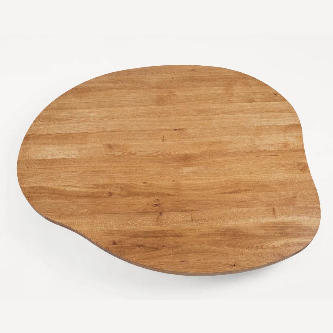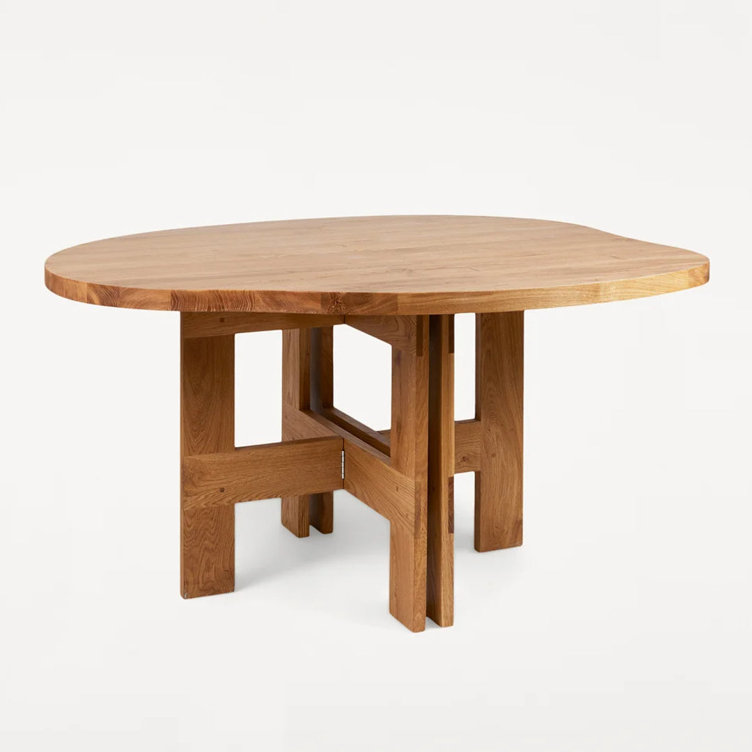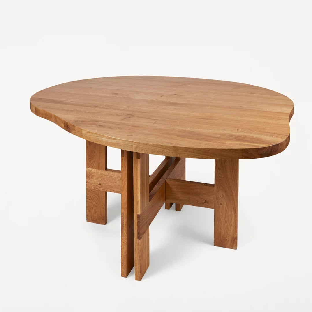 The Farmhouse Trestle Table Pond is a uniquely sculptural and organic pond-shaped table design crafted in high-quality solid oak. Supported by trestles and inspired by traditional farmhouses with a rural aesthetic, the wooden dining table serves as a focal point in any living space, kitchen, or dining room.