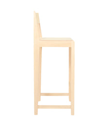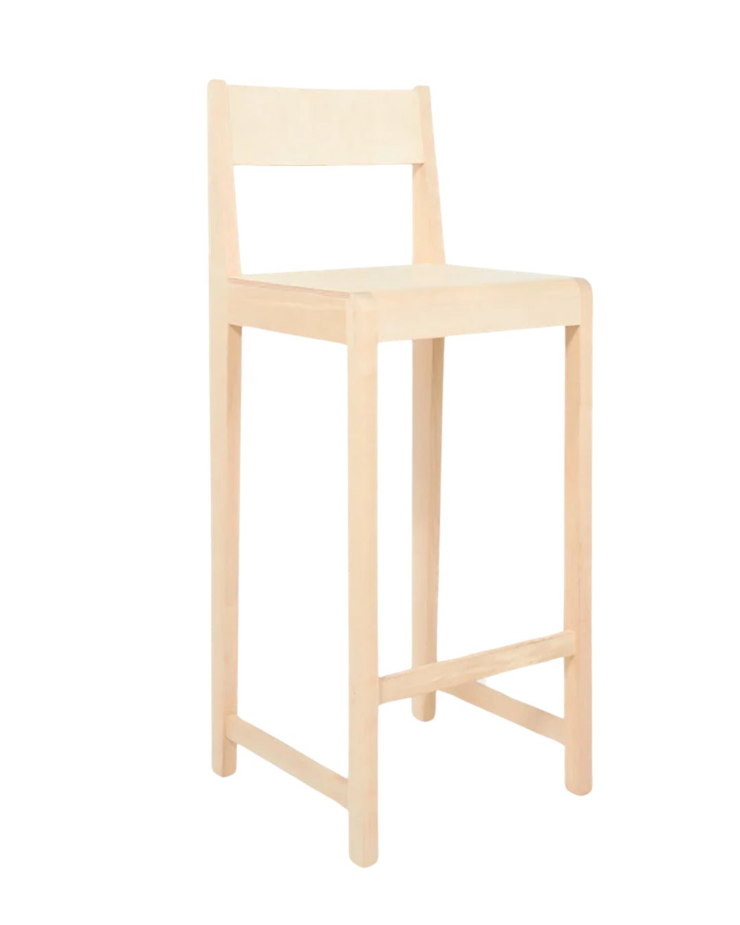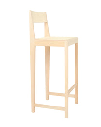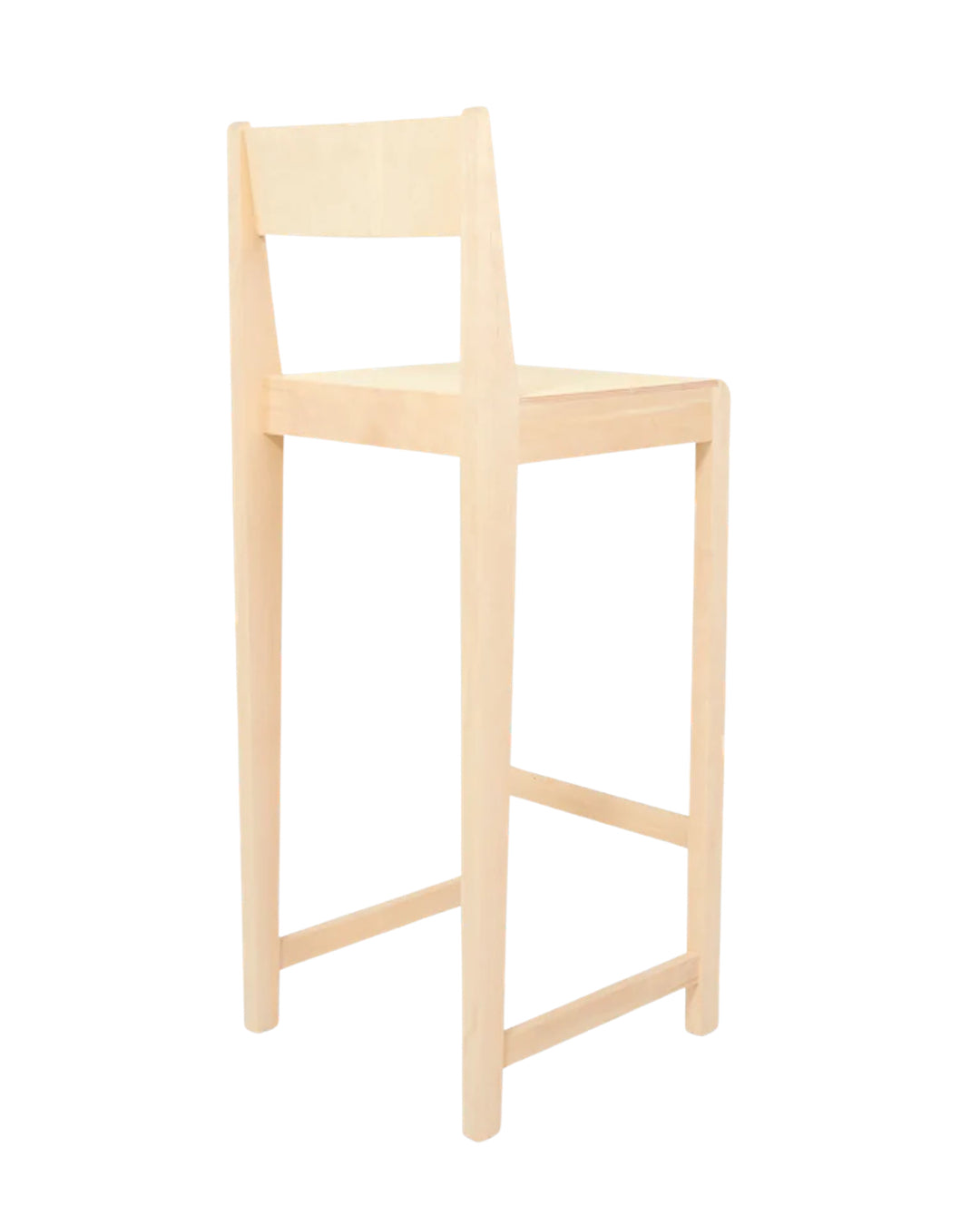 Bar Chair 01 I H76 is defined by a geometric silhouette and a series of stark linear planes inspired by seating commonly found in Nordic churches since the early 20th century. The chair, made from Baltic oiled birch and adapted for bar spaces, comes in various finishes suiting a wide range of environments.