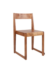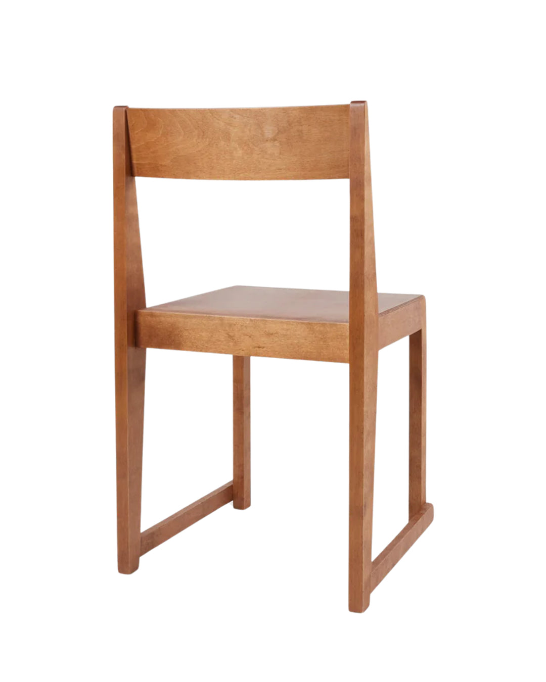 Chair 01 is defined by a geometric silhouette and a series of stark linear planes inspired by seating commonly found in Nordic churches since the early 20th century. Stackable and easy to store, the dining chair's archetypical construction leads to reliable sturdiness. Made in Baltic oiled birch, it comes in various finishes suiting a wide range of environments.