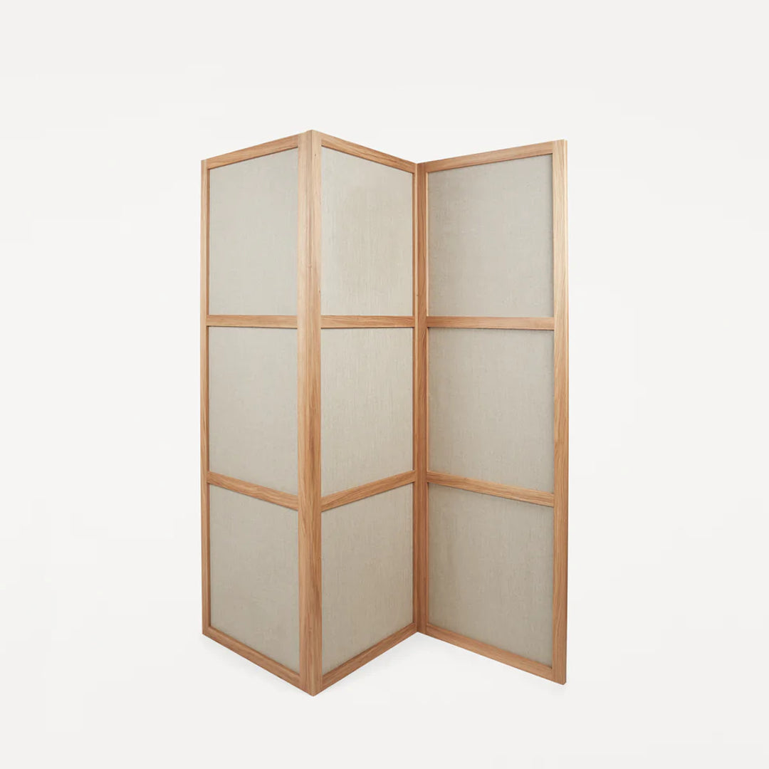 The Frame Room Divider is designed to be a discrete and subtle way of separating any room. Whether you require some privacy, a place for guests to relax, or want to add a spatial element to your home, the Room Divider maintains the same experience as the room and allows for translucency. The free-standing pieces are composed of natural oak and canvas and are held together with strong magnets to form a simple aesthetic and for practicality in moving.