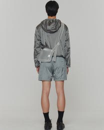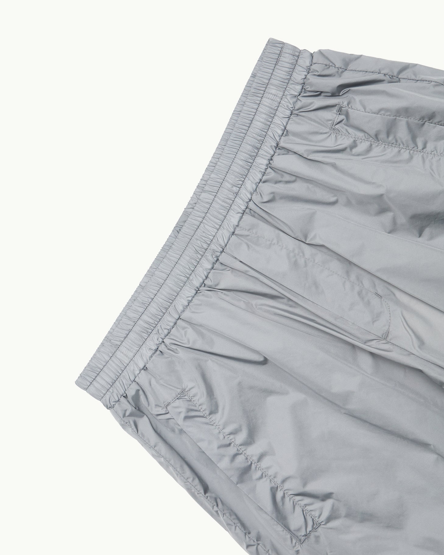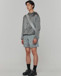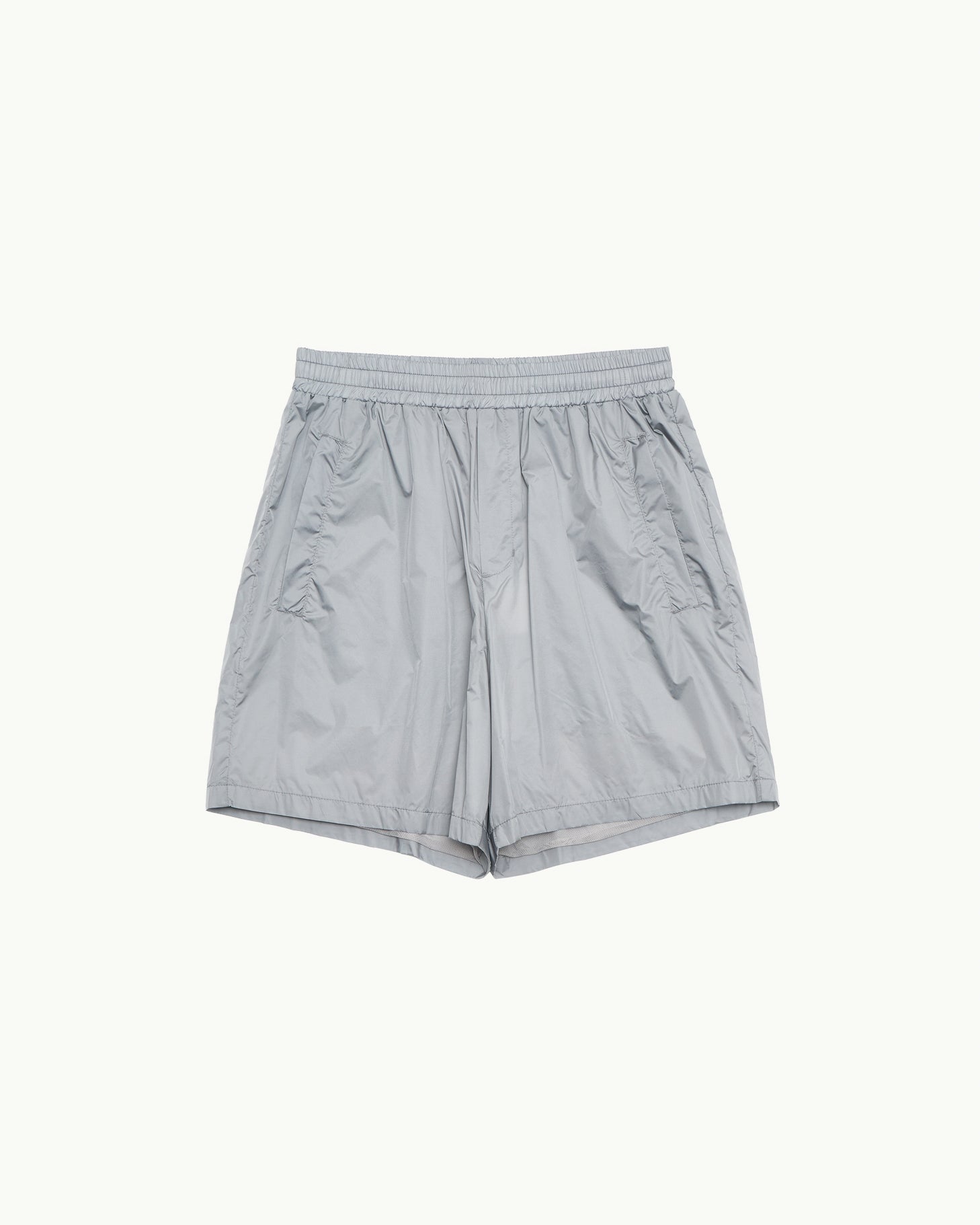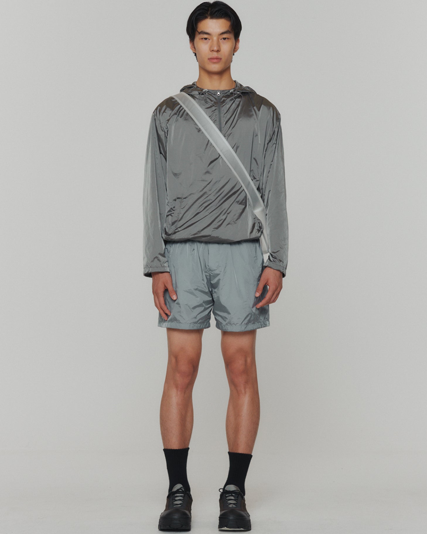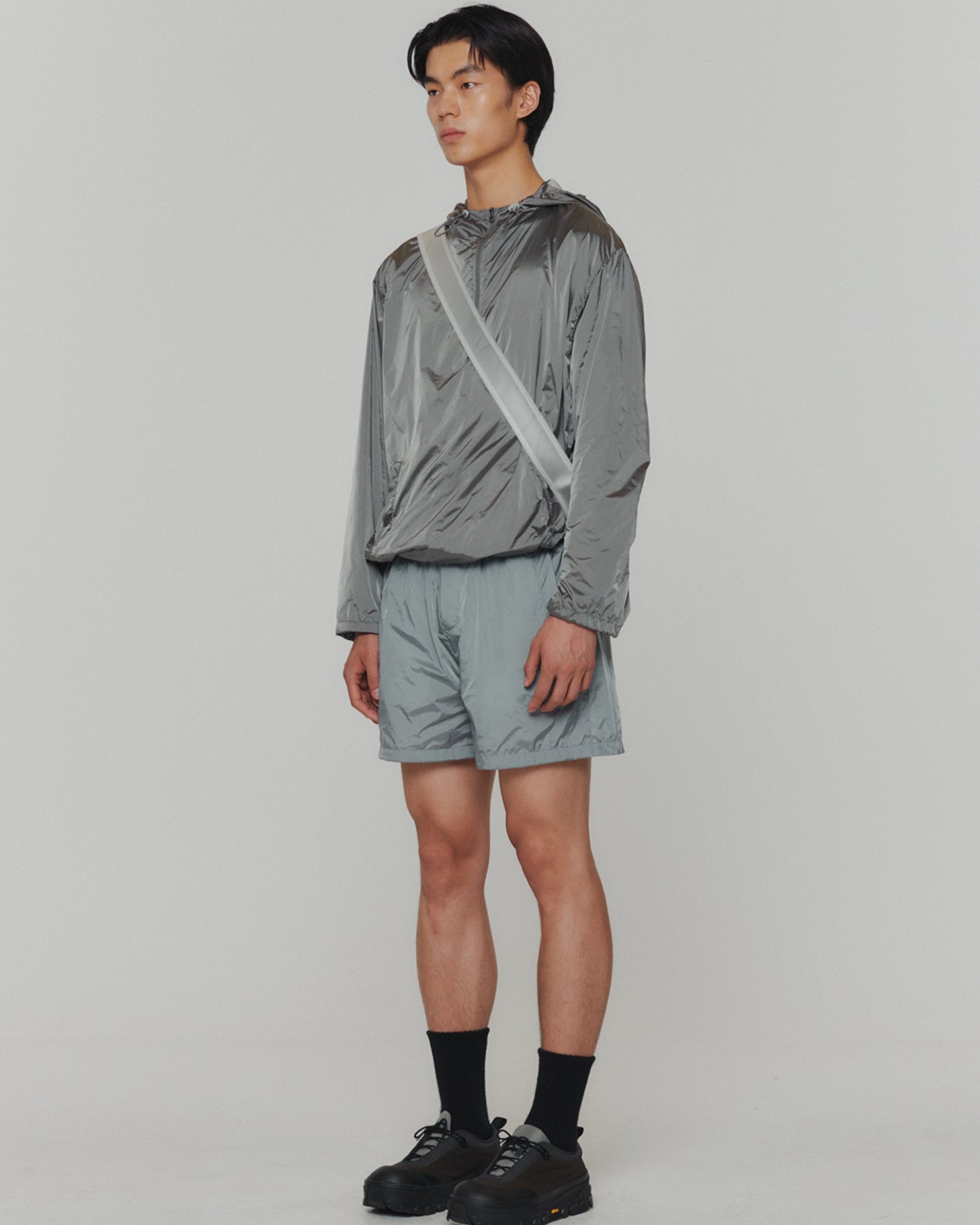 These are short-length trunk shorts made of nylon material with a glossy texture. Mesh lining is used for inner ventilation. They have a full waistband and string adjustment for easy wear. These shorts are great for creating a casual look with their glossy material and short length.