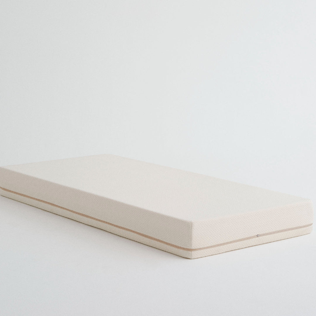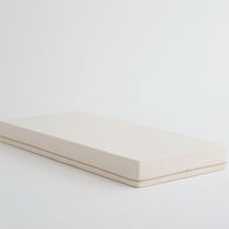 The mattresses are available in two different firmness levels and are covered in a natural textile made of unbleached GOTS-certified organic cotton. Due to its textured character, the cover creates a welcoming softness, with a ventilating capacity that nourishes the skin and formulates a nonallergenic environment for rest.