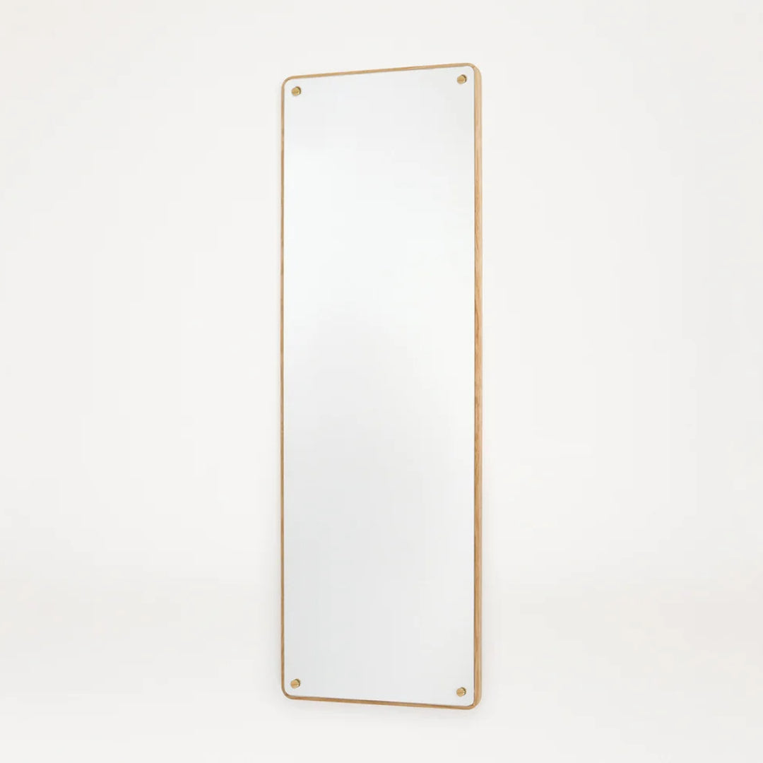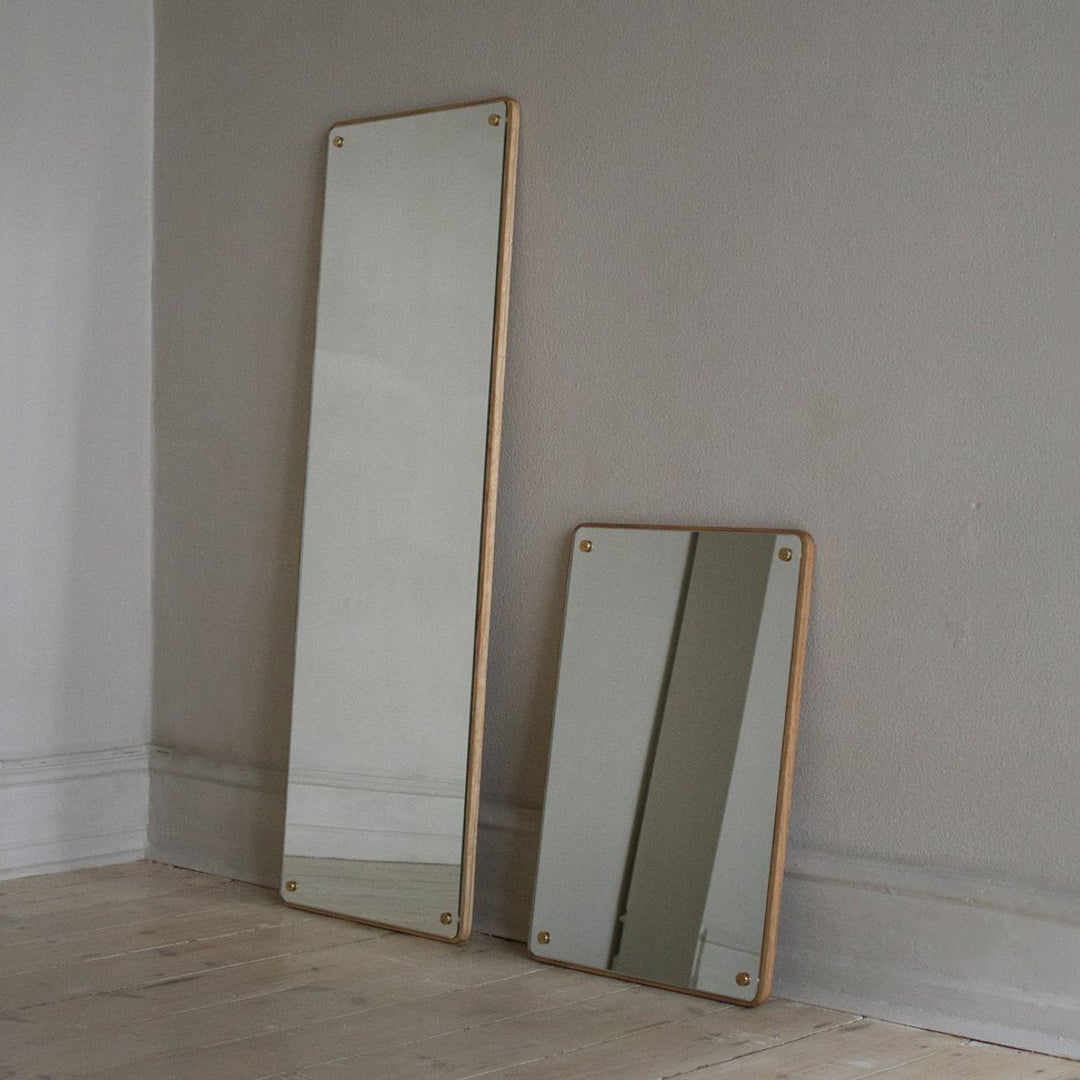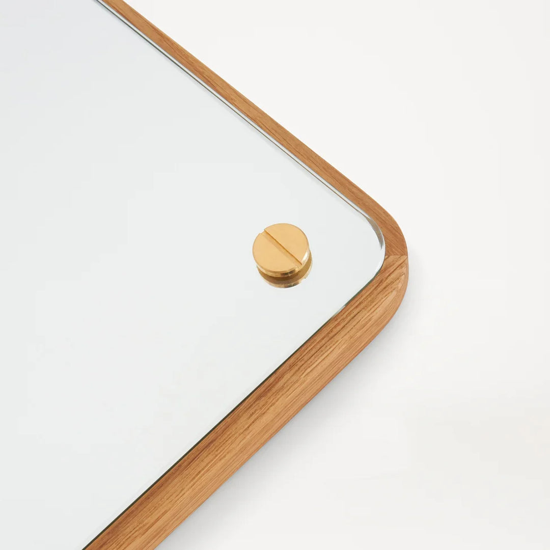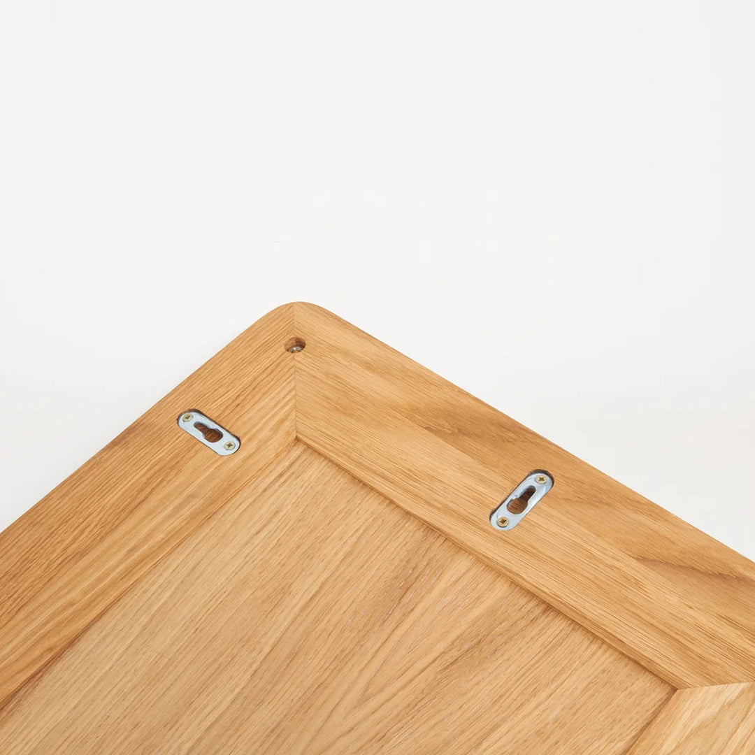 The Rectangular Mirror, made from high-quality materials including solid oak and brass fittings, is a highly-versatile and classic mirror that can be hung vertically or horizontally. The easy-to-mount item features exposed wooden edges and visible brass screws—a timeless construction celebrating simplicity.