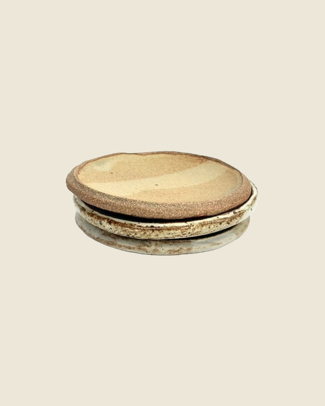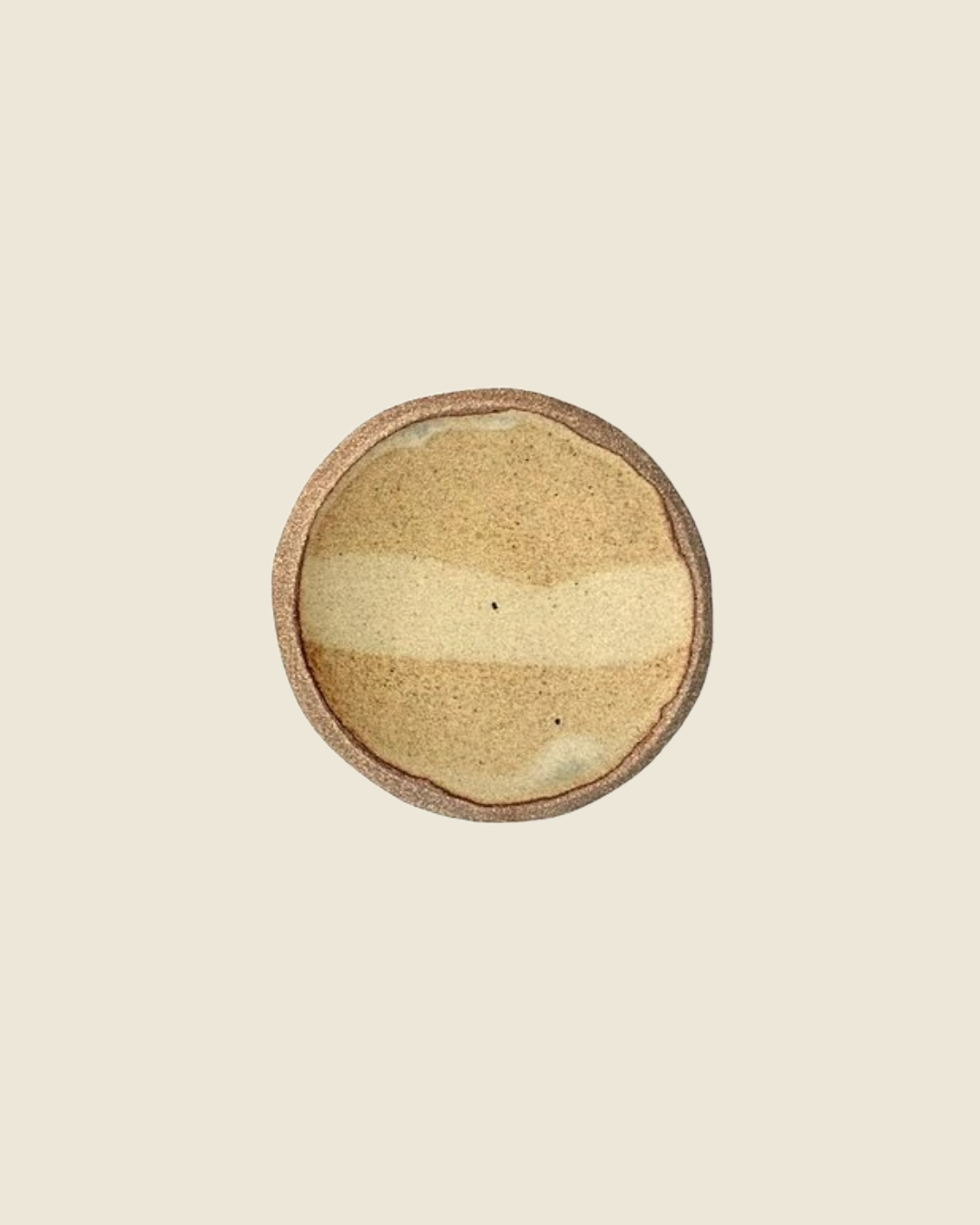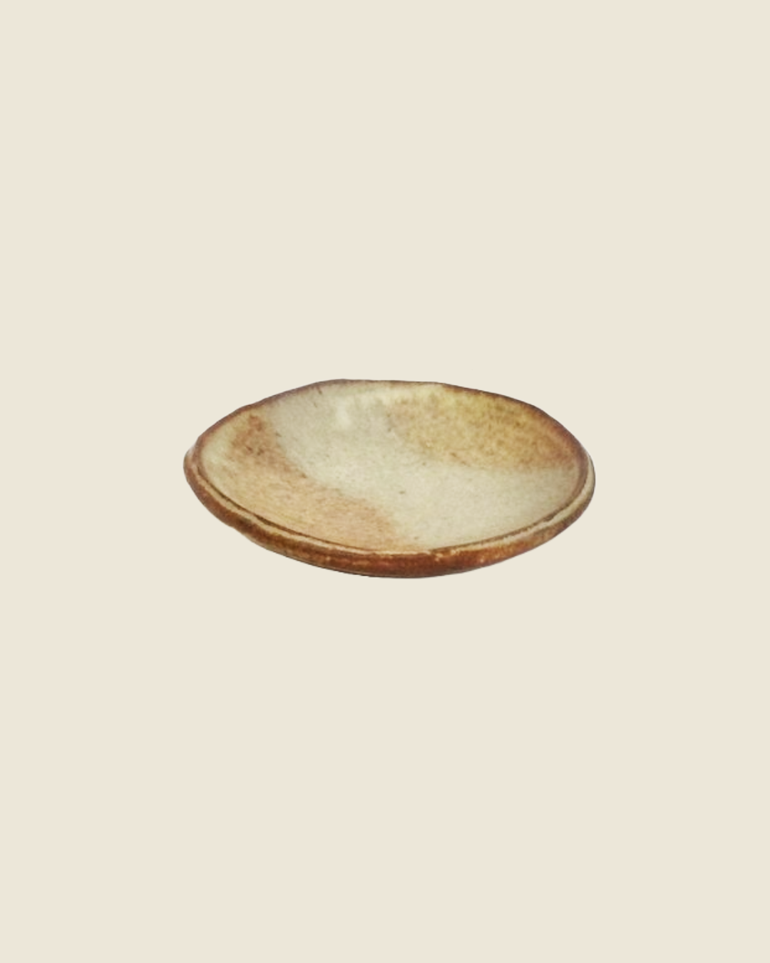 A cute little plate — perfect for serving small bites, appetizers, or a sweet treat. Glazed in matte rust and wheat.